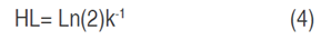 Where Ct is the residue concentration at time t, C0 is the apparent initial concentration or nominal rate and k is the dissipation constant. The parameters estimated were used to calculate the average half-life (HL) of each insecticide in stored soybeans by using Equation 4: