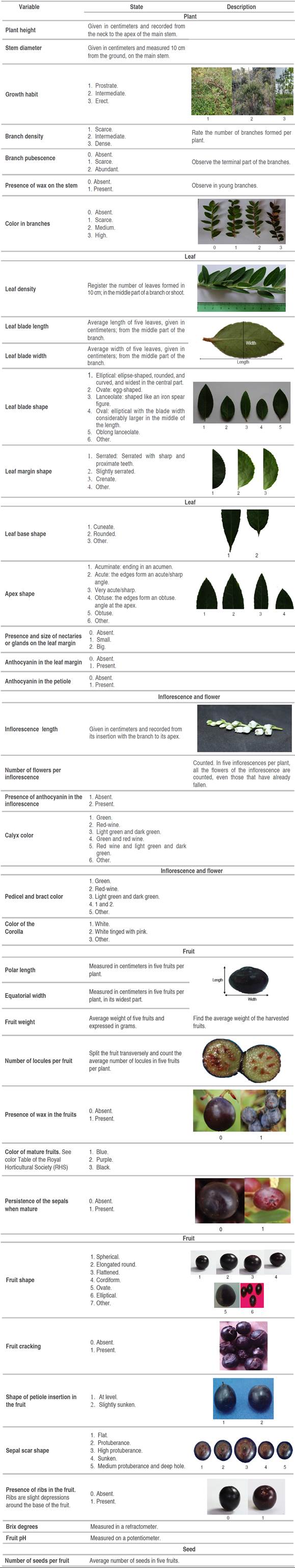 Table 1: List of variables, state, and description proposed as a descriptor for Vaccinium meridionale Sw.