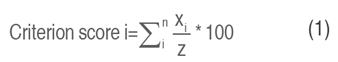 Where x = score of sub-criteria of criterion i; z = the number of sub-criteria of criterion i.
