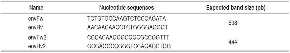 The fragment amplified in the PCR corresponds to the region that codes for the surface protein gp51, vital in the infectivity cycle of the virus since it is responsible for the recognition of the receptor and the binding of the virus to the host cell. Therefore, it is decisive to know the range of virus hosts (Gao et al. 2020). The primers selected to carry out the nested PCR of the env gene have been used in various diagnostic and genotyping studies of the virus since 1996 due to the low genetic variability of this region concerning other genome regions (Fechner et al. 1996; Polat et al. 2017).