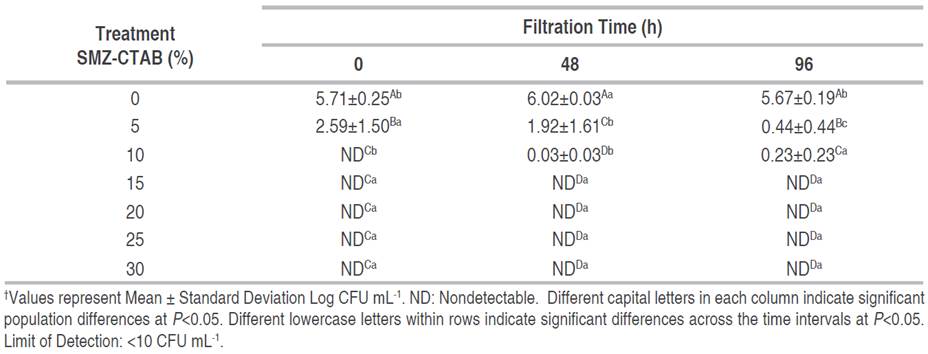 Table 1: Escherichia coli O157:H7 counts† in PBS after filtration through SMZ-CTAB.