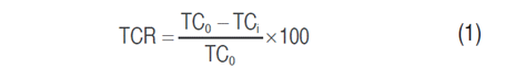 Where TC0 is the total carotenoid content before spaghetti processing (drying and cooking) and TCi is the total carotenoid content after spaghetti processing (drying and cooking).