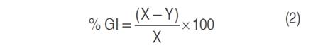 Where "Bd" is the diameter in the blank (mm), and "Td" is the diameter in the treatment (mm).