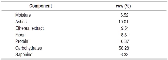 Quinoa husks were characterized by proximal analysis and total content of saponins.