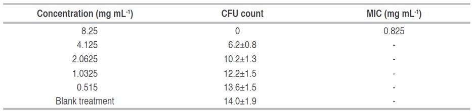 Table 4: Minimum inhibitory concentration (mg mL-1) of saponin extract against the germination of B. cinerea spores, after 72 h of incubation at 25 °C.