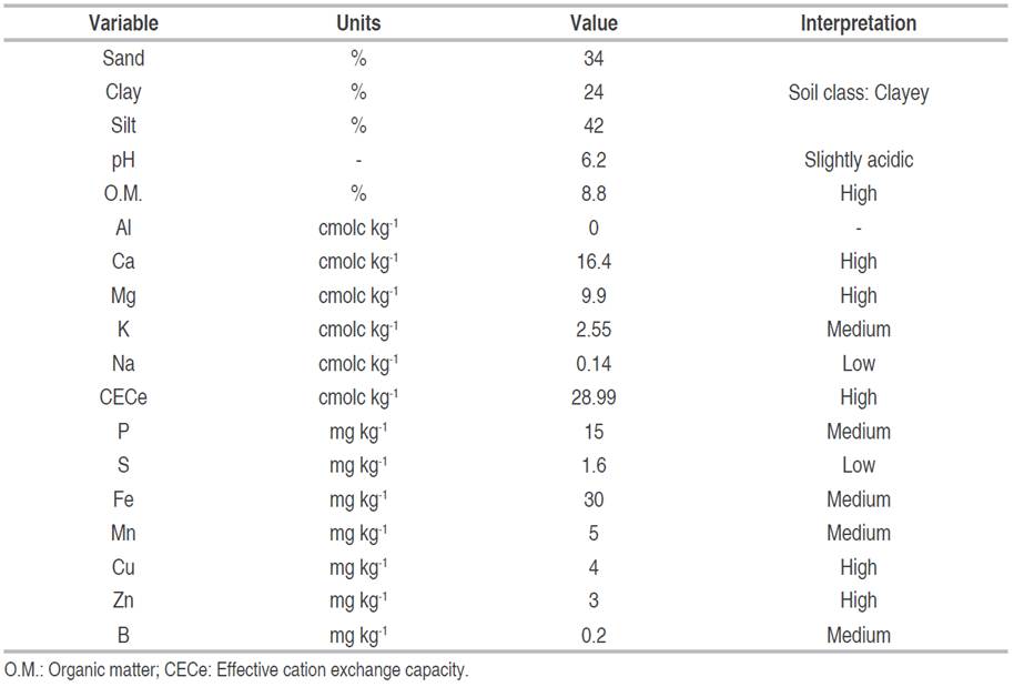 Table 1: Los Comunes farm physicochemical soil analysis (El llano de Montaña village, Sopetrán municipality).