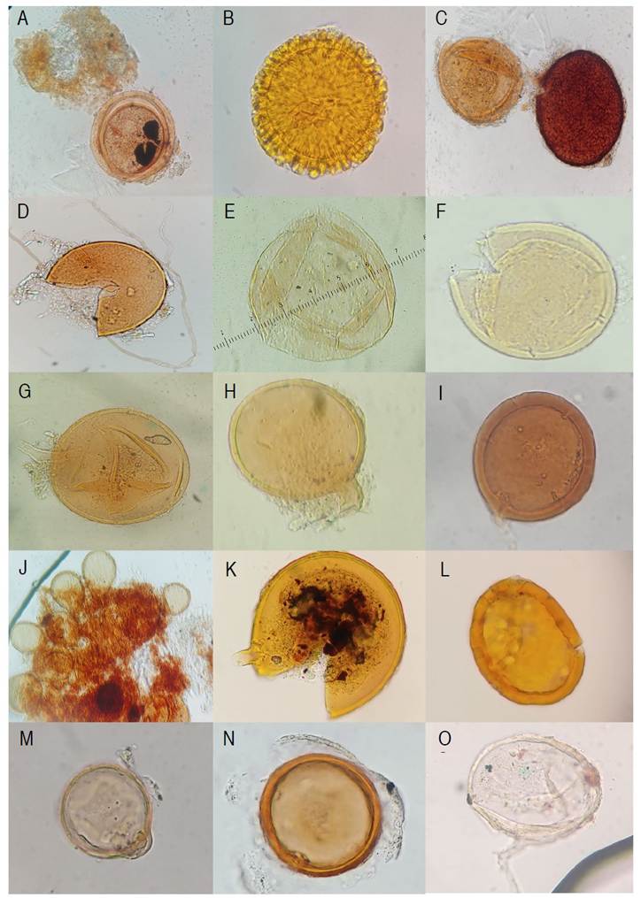 Figure 1: Tamarindus indica spore diversity in Sopetrán municipality, Antioquia - Colombia. A. Acaulospora aff. delicata, B. Acaulospora aff. denticulata cf., C. Entrophospora aff. Infrequens, D. Claroideoglomus aff. etunicatum cf., E. Diversispora sp1 cf., F. Diversispora sp2 cf., G. Funneliformis geosporum, H. Glomus aff. macrocarpum, I. Glomus glomerulatum, J. Glomus rubiforme, K. Glomus sp1, L. Glomus sp2 aff. badium, M. Rhizophagus aff. clarus, N. Rhizophagus sp1 and O. Paraglomus aff. occultum.