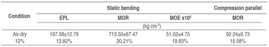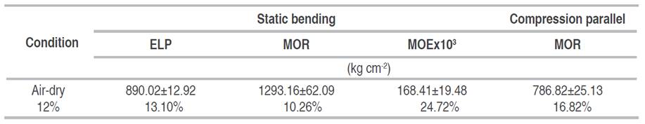 Table 3: Mechanical properties of the wood Brosimum lactescens species.