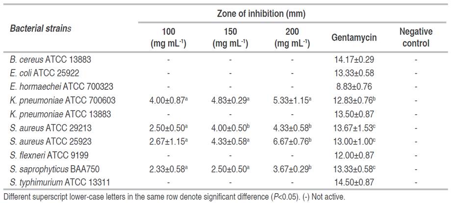Table 2: Antibacterial property of acetone extracts from Camellia cattienensis.