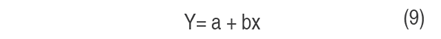 Where a is the linear coefficient (considered as zero in the analysis, to force the model to pass through the origin) and b is the angular coefficient, which must be as close as possible to the unit. The final model that was selected was the one with the highest R2 in the simple linear regression between the values observed and those estimated by the models, which were chosen based on the criteria mentioned above.