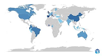 Figure 2 illustrates the geographical dissemination of research papers. The methodology used to determine geographical representation was the location of the research institutions to which the authors belong. On the other hand, the intensification of the color blue shows the scientific strength of the country according to the number of records, for graphic analysis, the five main countries will be studied, which in their respective order are: Spain and United Kingdom (17), Ghana and (16) Italy, finally,