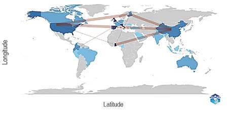 Ecuador with (15) records. This research has been carried out in partnership with different countries. The strongest collaborations, according to the number of frequencies represented in Figure 3 by the weight of the line, there is a triangulation of collaboration between Finland with China, and the United States, as well as a reported network between China and the USA. Finally, there is a strong collaboration between China and Ghana (Figure 3).