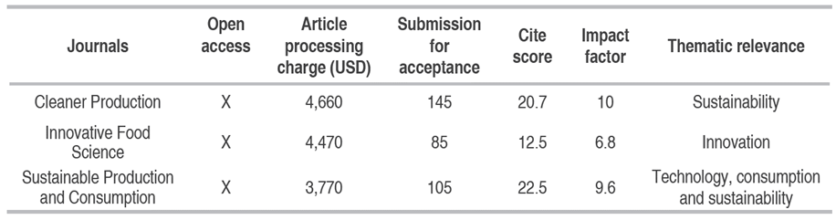 Analyzing the submission policies and trends of the journals (high-impact journals), all of which are Open Access, generates greater visibility of the research, as there is no charge for accessing the document. This allows the development of a democratization of knowledge by providing access to information to various stakeholders, including cocoa cooperatives and small and medium-sized enterprises, which face budgetary constraints.
