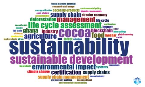 This work aims to perform a bibliometric analysis to identify global trends in the world cocoa industry related to sustainability practices in scientific literature. The above process will be a fundamental input to answer the following research questions: Which are the leading countries in research on cocoa and sustainability? Which are the high-impact journals of scientific publication? What are the global research trends in established cocoa and sustainability issues? What are the main sustainable practices in the cocoa industry? This paper has been divided into four parts: 1) deals with the introduction, including the challenges of the cocoa industry in relation to sustainability. 2) concerned with the methodology used for this study, Preferred Reporting Items for Systematic reviews and Meta-Analyses (PRISMA) approach. 3) deals with the results of the scientific data mining that will provide answers to the questions posed in the introduction, and 4) deals with the discussion from the metaphorical approach of the tree of knowledge.