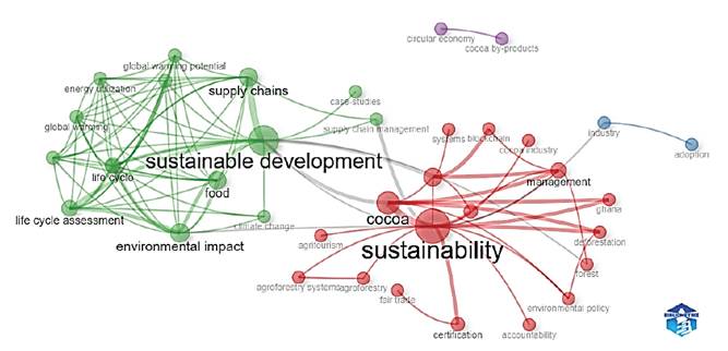 Geographical analysis showed Spain, the UK, and Ghana, together with Ecuador, lead the research; the strongest scientific clusters are those related to the China-US network, and finally, there is a strong collaboration between China and Ghana. Research on sustainable cocoa production is concentrated in Europe. This leadership arises because of the restrictive measures imposed on cocoa exports to this region.