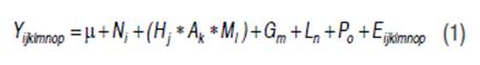 Y ijklmnop: Productive or reproductive trait μ: Population average of productive or reproductive trait N i: Effect of number of calvings