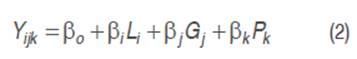 Yijk: Productive or reproductive trait β0 : Intersection or constant βi , βj , βk: Parameters of each variable L i: Effect of lactation duration G j: Fixed effect of the alleles P k: Effect of the total milk yield per lactation