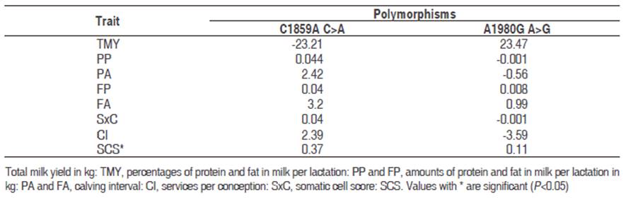 Association of polymorphisms with productive and reproductive parameters