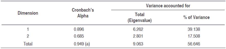 Table 5: Summary table of the model in CATPCA.