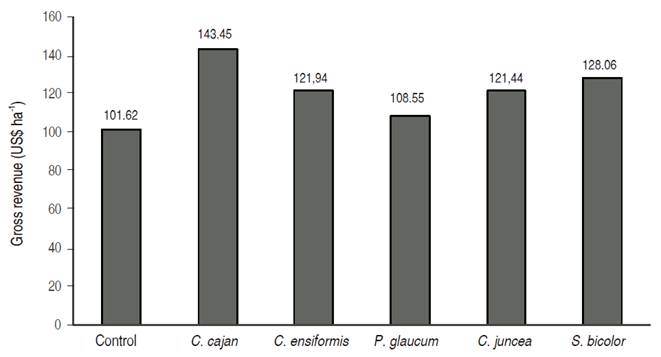 Figure 2: Gross revenue obtained with the crambe culture grown on residual of different cover crops.