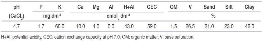 Table 1: Chemical and physical attributes of the dystrophic red latosol of the experimental pequi orchard area (Caryocar brasiliense Camb.).