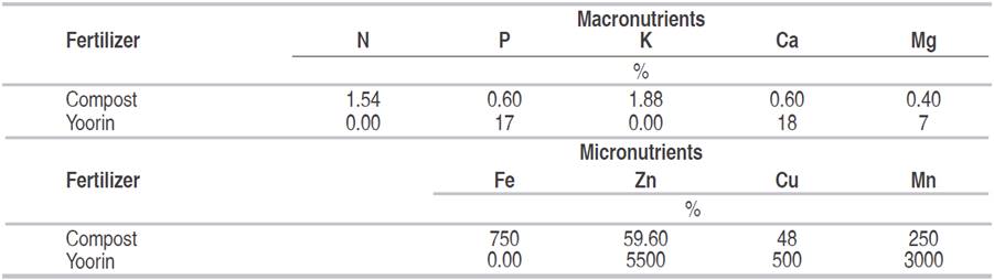 Table 2: Nutritional composition of the compost and the Yoorin used for the fertilization of the experimental pequi orchard.