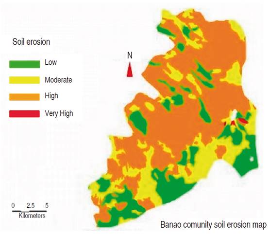 Figure 2: Soil erosion using the 1:25 000 map generated from the MapInfo Professional 9.0 software (2010).