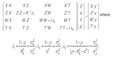 Resende (2002) stated that the most appropriate procedure of prediction of breeding values in the genetic evaluation of perennials is the individual BLUP approach, consisting basically of the prediction of breeding values of the random effects of the statistical model associated to the phenotypic data, adjusting the data to the fixed effects and to the unequal number of data in the plots by the mixed model methodology (Henderson and Quaas, 1976).