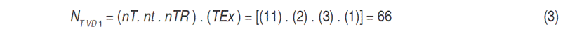 The experimental runs were performed with three replicates (coefficient k) for each VD. The total experimental runs value was given by the sum of the experiments, considering absence of control (Equation 6) and adding the total sum of control used; the value obtained is given after Equations 7 and 8.
