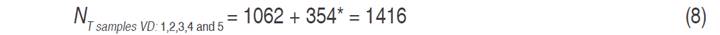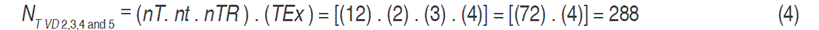 N T VD1: Treatments measurement number the VD1 N T VD2,3,4 and 5: Treatments measurement number the VD2,3,4 and 5 TEx: Type of Experiment, according to VD type N TT VD1,2,3,4 and 5: Total Treatments number VD1,2,3 and 5 N CTwithoutVD1,2,3,4 and 5: Total runs number the VD1,2,3,4 and 5 measurement; no control treatment N Tsamples VD1,2,3,4 and 5: Total Samples number used in all trials