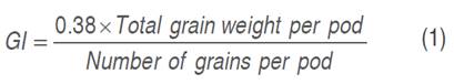 The yield was calculated, as suggested by Puentes et al. (2014a), considering the number of pods per tree, the grain index (GI), the number of grains per pod, and the planting density. The GI was determined with Equation 1, proposed by Allen (1987)