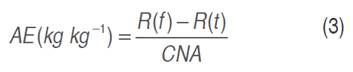 The efficient use of N-P-K as a function of the recovery efficiency of fertilizer (RE) indicates the ability of the plant to absorb the nutrients applied to the soil, which was determined with Equation 2, proposed by Baligar et al. (2001).