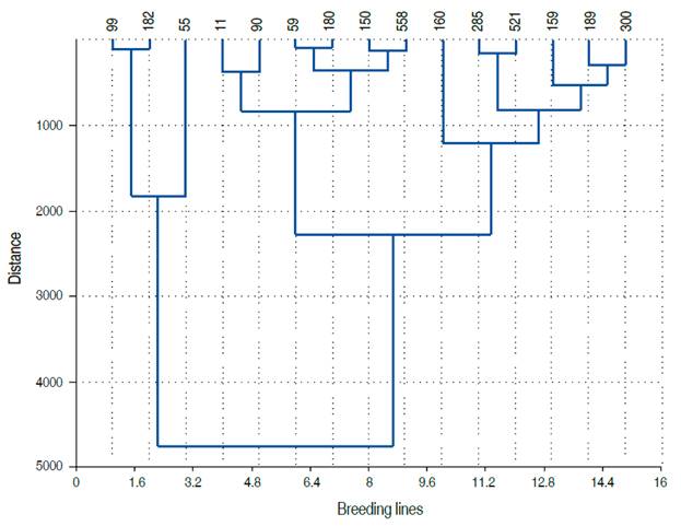 Figure 4: Genotypes clustering based on the eleven measured traits in the top 15 selected lines.