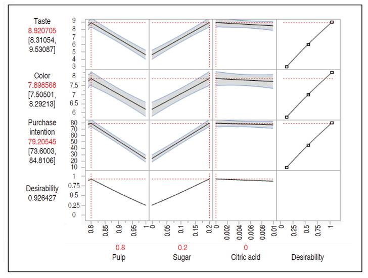 Figure 1: Prediction profile according to the soursop leather ingredients.