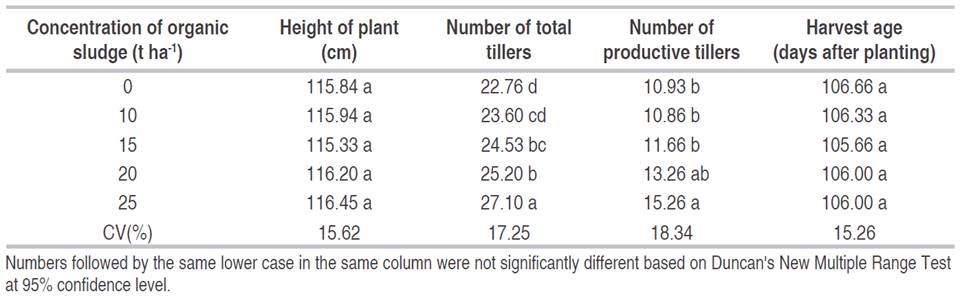 Application of organic sludge in different concentrations had an effect on the total number of tiller and productive tiller but it did not affect the height and age of the rice plants (P<0.05) (Table 1).