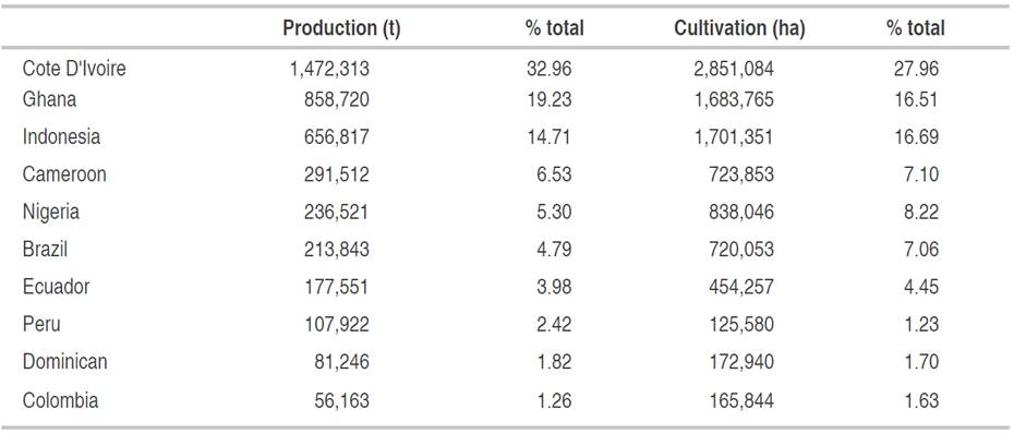 Table 1: Countries with the highest production of cocoa (Campos-Vega et al., 2018).