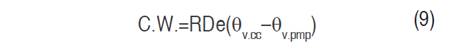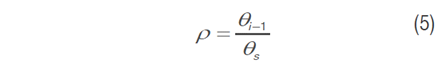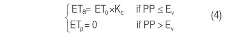 Where θi is the soil moisture of the previous day, and θs the saturation moisture. When the estimation of ρ<0.35, the crop evapotranspiration is lower than the atmospheric demand due to a lack of water in the soil, and its value is that given by the estimate; on the contrary case, the estimation uses ρ=1.