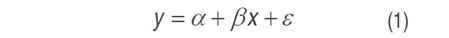where α is the regression intercept, β is the slope, and ε represents the random error.
