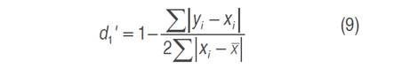 Index of agreement (d), modified index of agreement (d 1 ), and revised index of agreement (d 1 ')