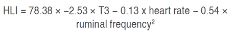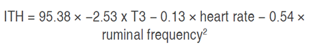 The results for multiple linear regression showed that 3 variables T3 (P<0.0502), heart rate (P<0.0102), and quadratic ruminal frequency (P<0.0167) were equally significant for both indexes, although with a low R2 (0.21). The only difference between the estimated models was found in the intercept 95.38 and 78.38 for ITH and HLI, respectively).