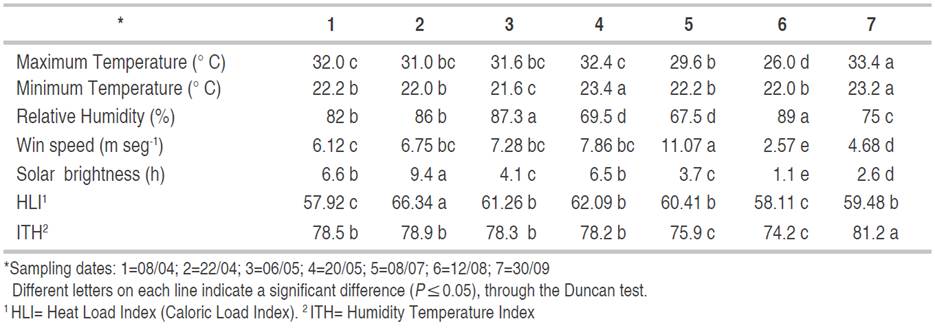 Table 2: Climatic variables, ITH and HLI associated with seven instances between April and September in the Experimental Center La Libertad (Villavicencio- Colombia).