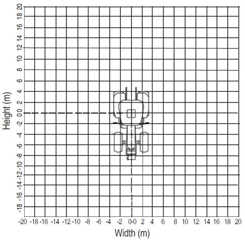 Readings were taken at an average height of the operator's ear, at points distributed in a regular 2×2 m sampling grid. Totaling 441 sampling points around the agricultural machine in stationary operation (Figure 1). These samples were later used in descriptive statistics. A spatial coordinate was arbitrated in meters where the central point (0, 0) corresponded to the point where the agricultural machine remained in operation during all collection. The central point (0, 0) corresponded to the operator's seat (Figure 1).