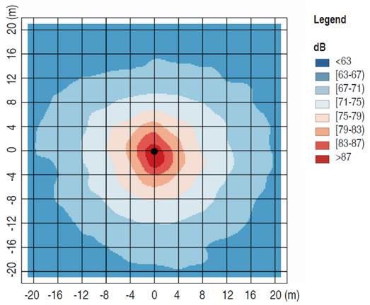 Figure 3: Spatial distribution map of the noise emitted by the studied micro-trator.