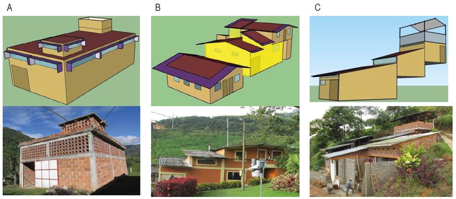 Three case studies corresponding to three wet coffee processing facilities were compared, which from now on will be called case 1, 2, and 3. Except for their architecture, the three cases have similar geographic location conditions (municipalities of the north region of Antioquia - Colombia), mechanical drying, annual production of 30 t of dry parchment coffee, and peak production in November. Table 1 summarizes the description of the location and architectural details of the three case studies.