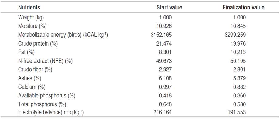 Table 1: Nutritional contribution of the basal diet (BD), designed in two stages: start and finalization