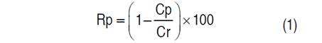 Where Rp is the protein retention coefficient, Cp is the solute in the permeate (kg), and Cr is the solute in the retentate (kg).