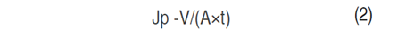 Where Jp is the permeate flow (L m-2 h-1), V is the volume of permeate (L), A is the effective filtration area (m2), and t is the time (h).