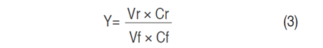 Where Y is yield, Vr is the retentate volume (L), Cr is the solute concentration in retentate (% w/w), Vf is the feed solution volume (L), and Cf is the solute concentration in feeding solution (% w/w).