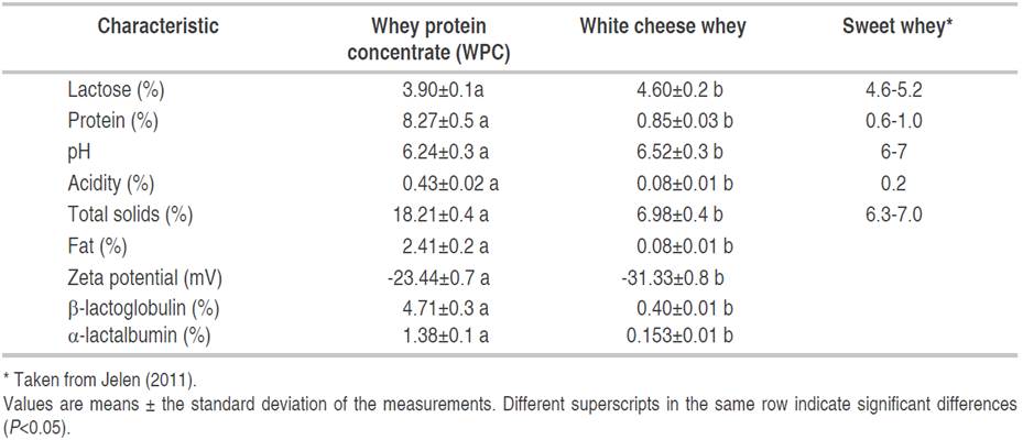 Table 2: Characteristics of white cheese whey and whey protein concentrate.