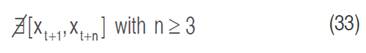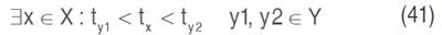 5. Each group must include a value that has a predecessor and a successor in time from the other group (equations 41 and 42).